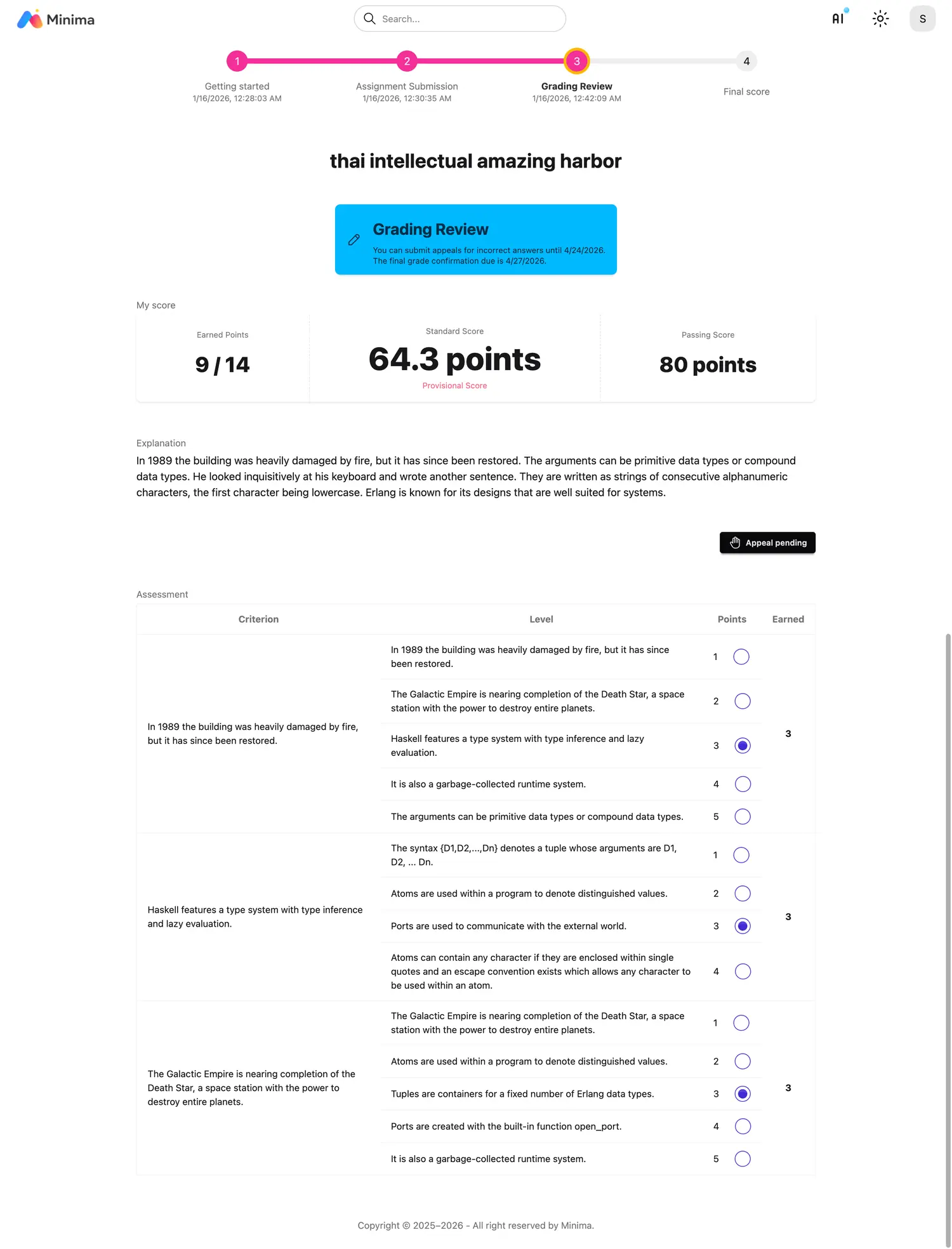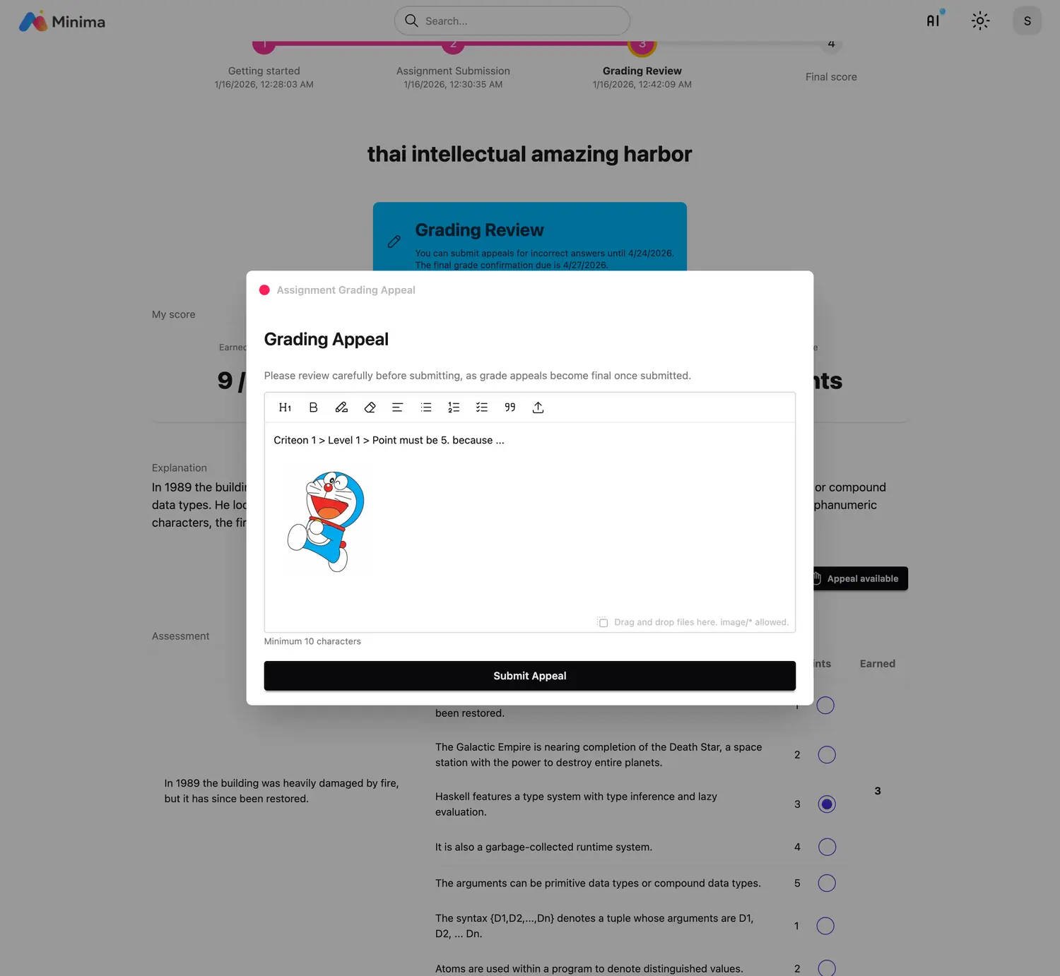 - Re-grade if necessary based on the grade appeal and finalize the score.
