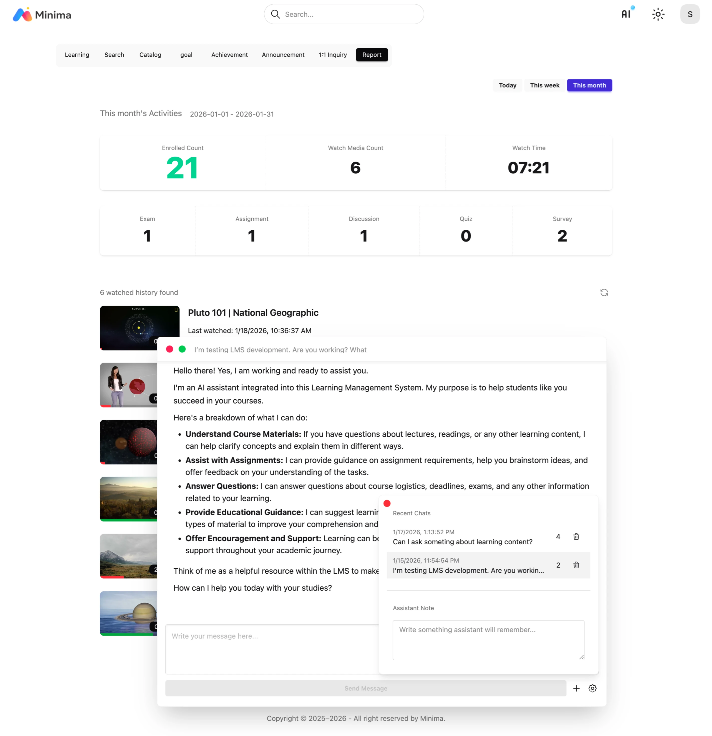 Minima LMS is designed to use multiple AI agents. With this architecture, it can be utilized not only as a learning assistant but also as a content builder or grader.