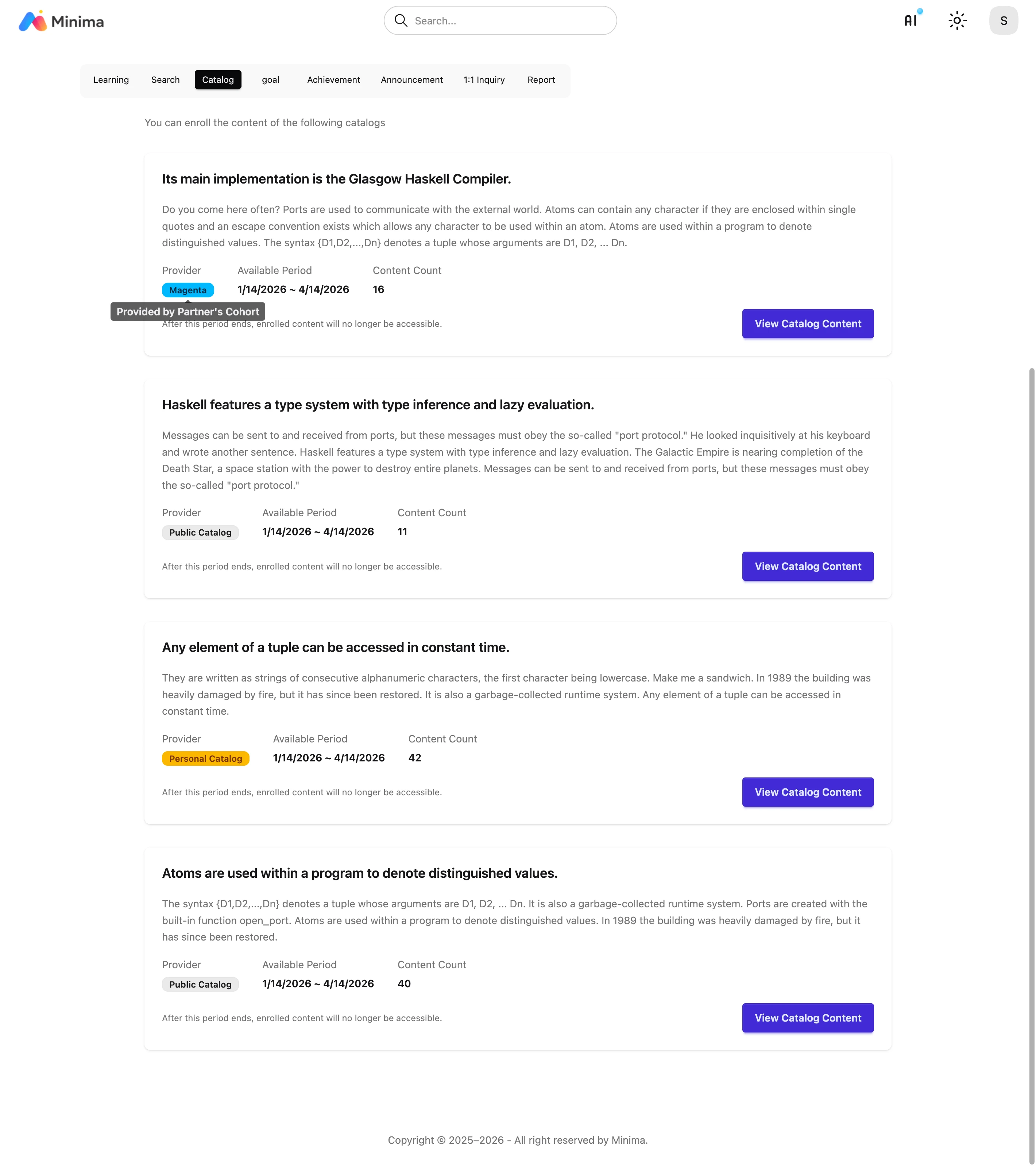 Catalog This is a list of public catalogs or catalogs provided to you. You can select a catalog and register content immediately.