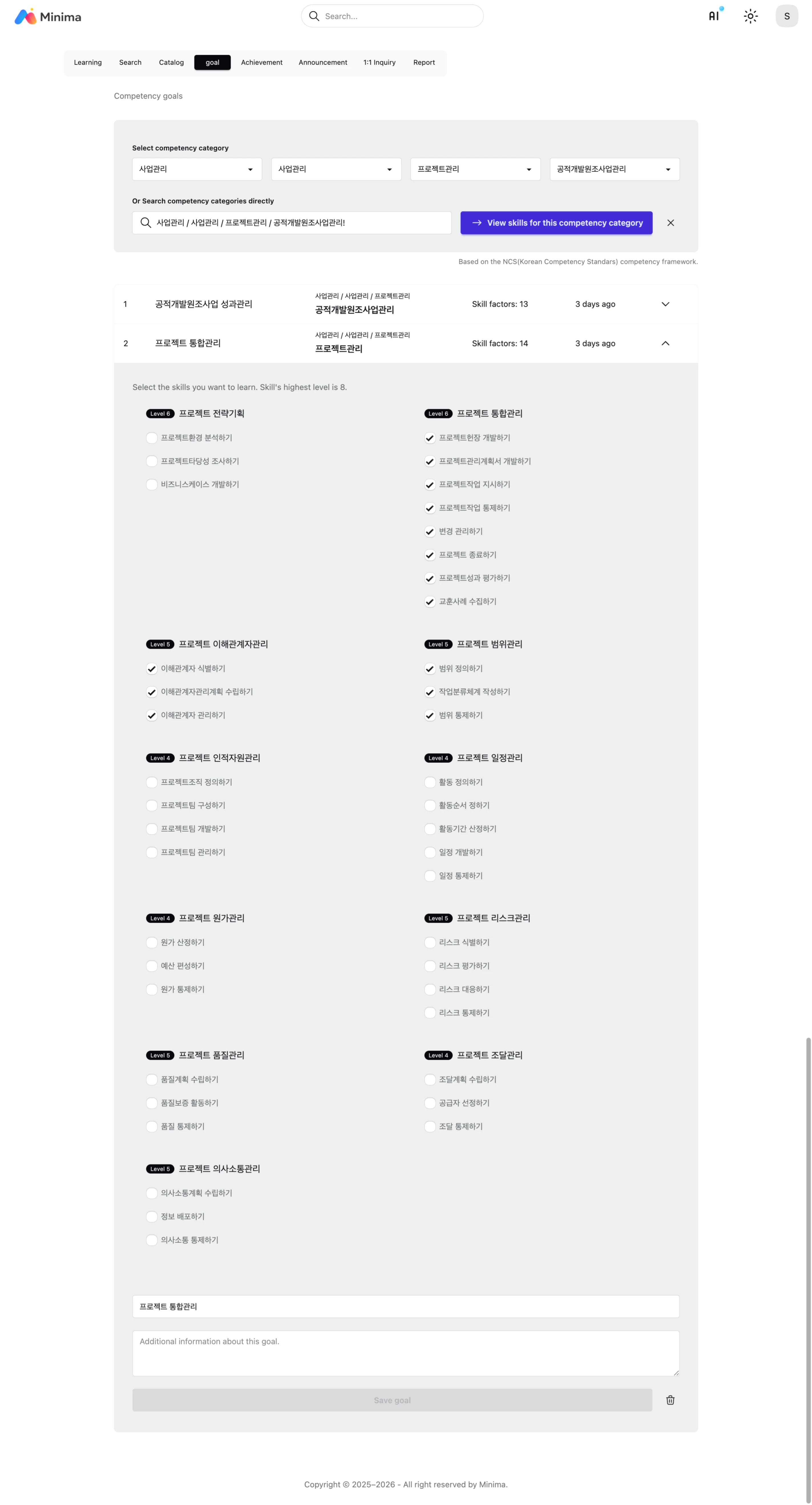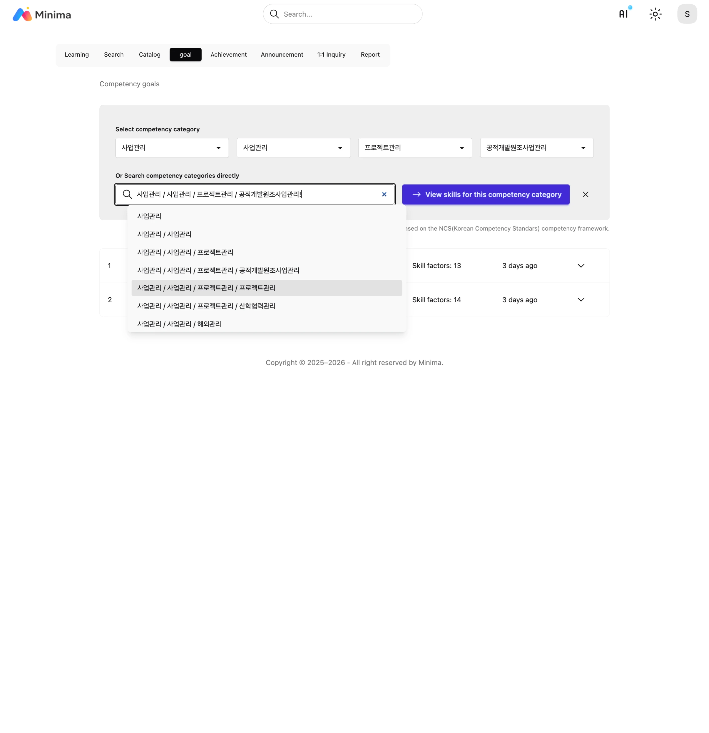 - Search for the skill you are targeting by selecting a category or entering it directly.