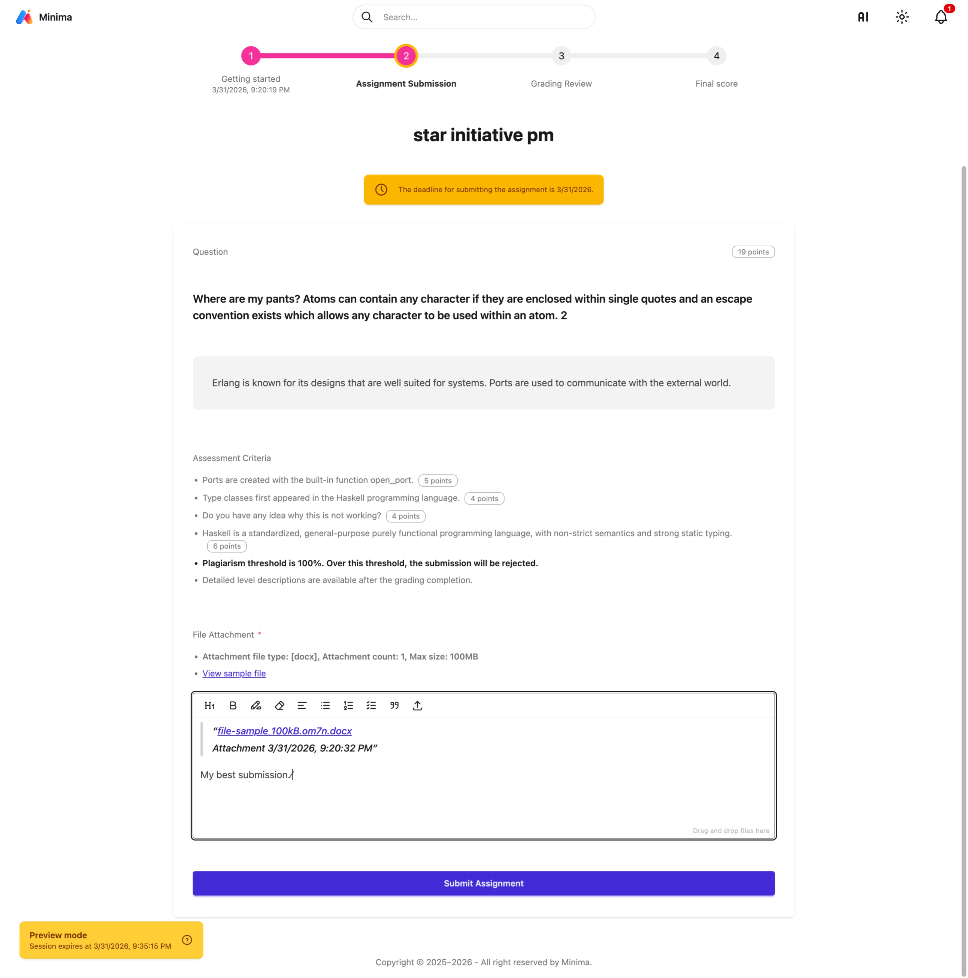 Assignments are graded by rubric. Use the rubric editor to create one from scratch or copy from an existing rubric.